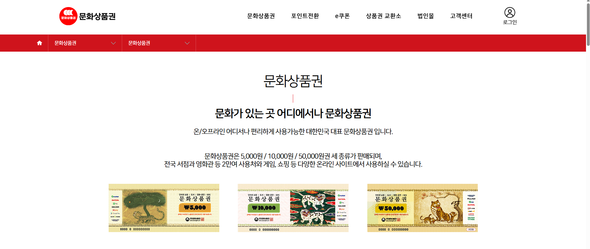 ✔ 문화상품권 공식 홈페이지에서 다양한 기프트카드를 직접 구매