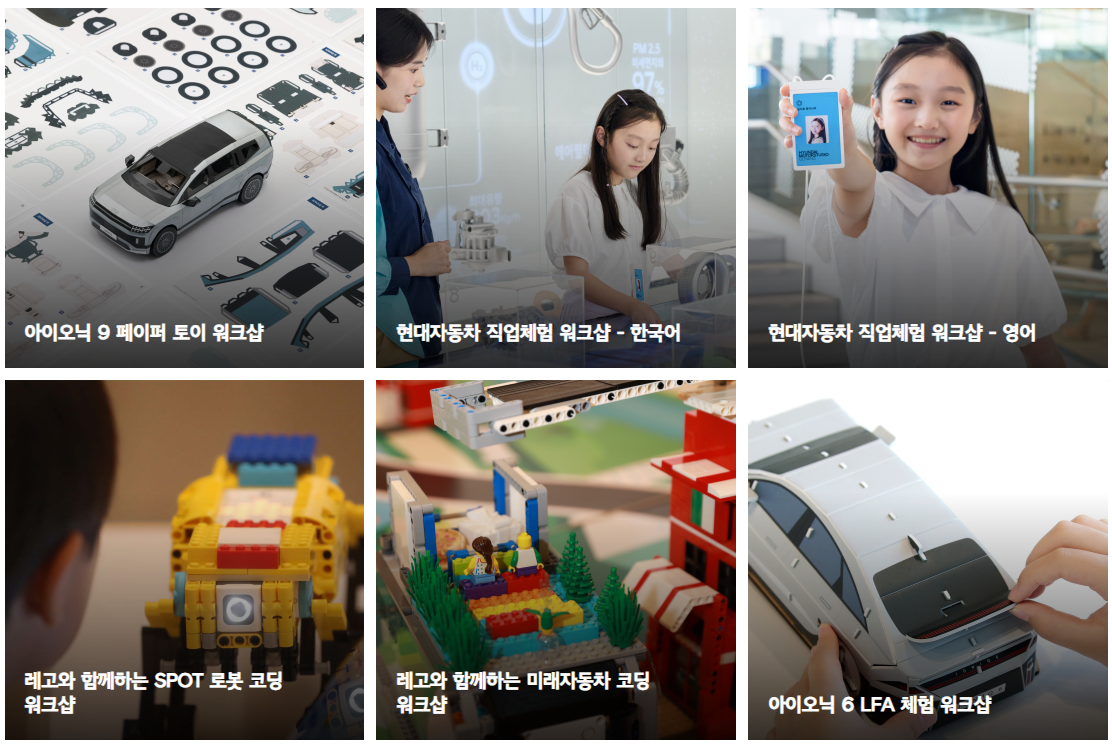 가정의 달인 5월에는 어린이들을 위한 ‘키즈워크샵’이 진행됩니다. 이 프로그램은 미취학 아동부터 초등학생까지 참여할 수 있으며, 자동차 퍼즐 만들기, 엔진 만들기, 자율주행 자동차 만들기 등 다양한 활동을 통해 자동차의 구조와 원리를 배울 수 있습니다. 참가비는 1인당 1만8천 원에서 3만8천 원이며, 참가자에게는 사진 액자, 어린이 티켓, 커피 쿠폰 등이 제공됩니다.